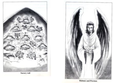 本章第一幅圖是位天使,叫 Rahmee,和一位叫 Precious 的嬰孩,她是2006年流產的,這位女嬰孩被她原生父母朝思暮想的念在心上,有一天她會重回她父母的身邊,因為她們已接受耶穌為救主了,在她父母未到天國前,她有著公主般的待遇。也有很多婦女並不知道曾流產過,因為在懷孕的早期是看不出的,當她們抵達天庭時,發現有小布包中的嬰孩正等著她們,多麼令人震撼啊!