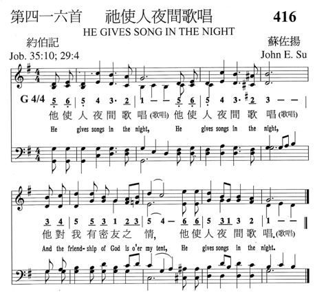 有時我們會遭遇憂傷與痛苦,但我們同樣的可以在夜間歌唱,無論我們爲主犧牲或是在敵對的環境中,均能堅穩地站立而得到快樂,如果能在夜間歌唱,那是多麽奇妙的行動阿!