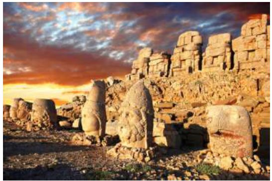 可是在這小王國中,卻出現一位要名垂千古的狂人。他也叫 安提阿庫,是 Mithridate 的曾孫,生於約 99BC,他自稱母親是亞 力山大大帝家族的後代,而父親是波敦王大利烏的後代,所以他 屬於王族,有特殊身份。為了人們牢記他的功績,他為王(38BC) 之後便命令在 2150 米高山上(Mount Nemrut)興建一個宏偉的祭 壇,排列着有幾座巨大石像,包括希臘人所信的孙敦,阿波羅和 波敦人膜拜的神祇,並且刻上他們的名字,而自己的像卻安放在 這些神像中間。每當百姓上山拜祭時,同時也會向他(自稱為 GOD KING)拜祭。他更命令百姓每月十六日慶祝他的生日和在十日慶 祝他的登基日。為了確保祭司及其後代能維持這種祭祀儀式,他 不惜用大量財物賞賜給他們。