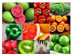 | 圖一:維生素C的化學結構 | 圖二:含有維生素C的新鮮蔬果 |
