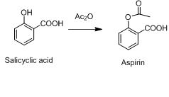 | 含325毫克的阿司匹林藥片 | 水楊酸(左邊)脂化變成 <阿司匹林>(右邊) |