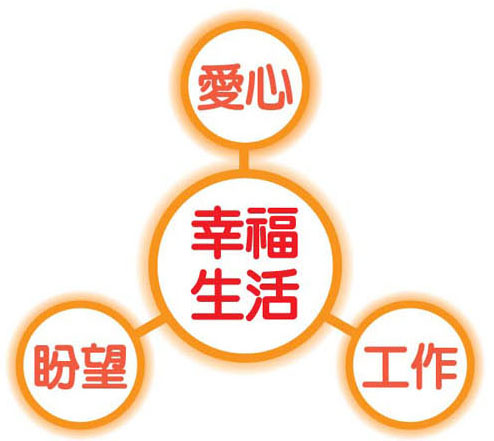 縱使某人充滿盼望,又有一份好工作,那又如何?若然不懂得愛,他只會是一個孤寂的人。最幸福的生活,就是懂得去愛,家裡有一位與你分享愛的人。正如聖經的教導:如今常存的有信、有望、有愛這三樣,其中最大的是愛。(哥林多前書13:13)