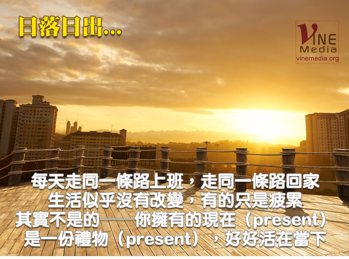 天父爸爸: 求祢幫助我,我每天被忙碌所牢籠,身心靈俱疲憊不堪,世事盡是勞苦愁煩、轉眼成空,我所盼的,也離我甚遠!我的神啊!求祢賜我新的眼光、活出新的生命,因為知道凡事都在祢的掌管之下,凡事祢必為我預備妥當,祢說:我不要為明天憂慮,因為明天自有明天的憂慮.一天的難處一天當就夠了。讓我學習把重軛交在祢的手裡,享受祢為我預備的一切,歡喜的與愛我、我所愛的人一同喜樂,把一切頌讚、榮耀歸祢,因祢賜下生命氣息給我,我理當靠祢歡呼喜樂!謝謝主,奉主耶穌基督的名,阿們。