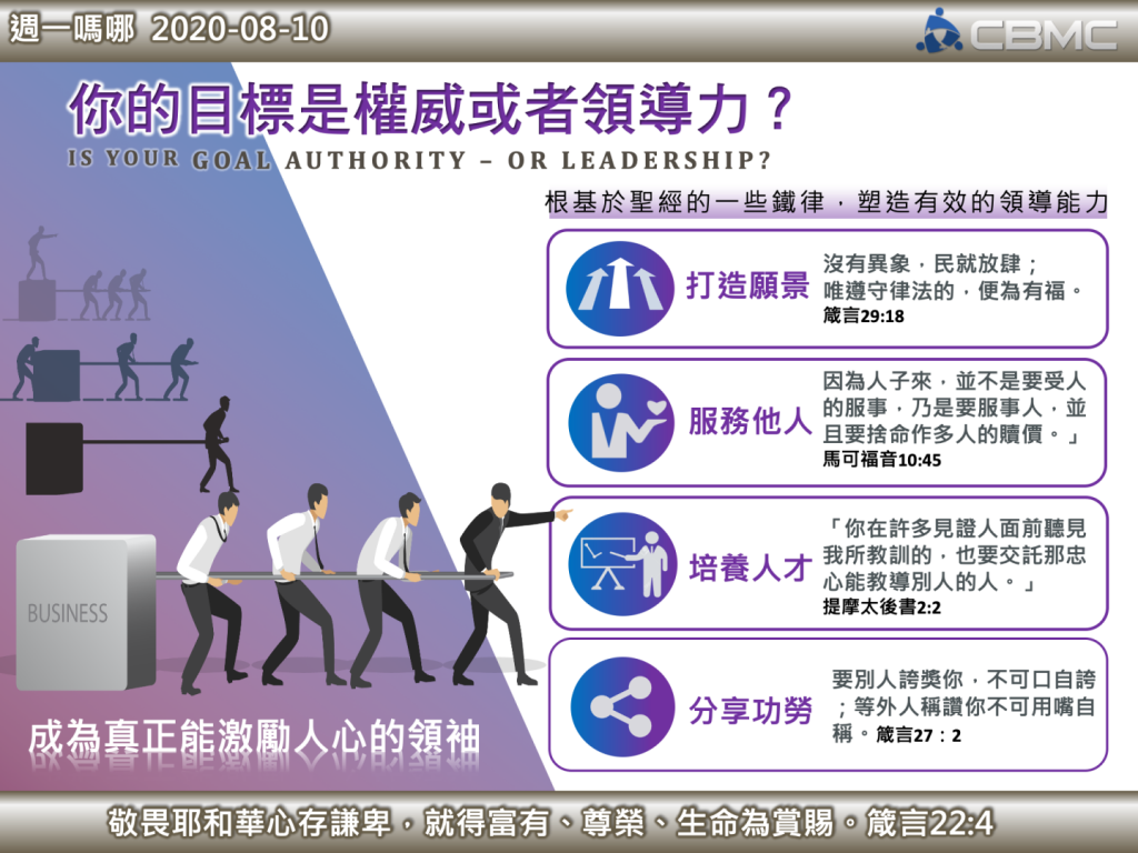 有人說,要確定你是不是領袖的唯一方法是轉身看看是否有人在跟隨你。真正值得跟隨的領袖有哪些特點?以下是根基於聖經的一些鐵律,對塑造有效的領導能力很有幫助: