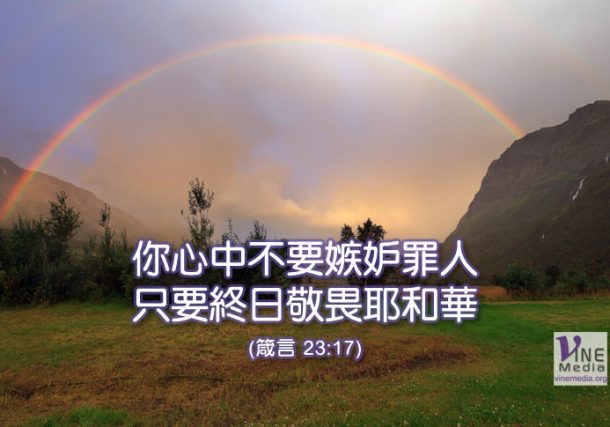 你心中不要嫉妒罪人.只要終日敬畏耶和華。 …