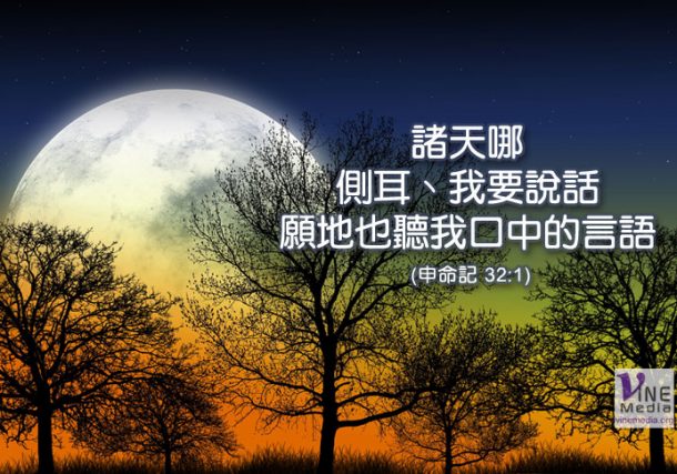 諸天哪、側耳、我要說話、願地也聽我口中的 …