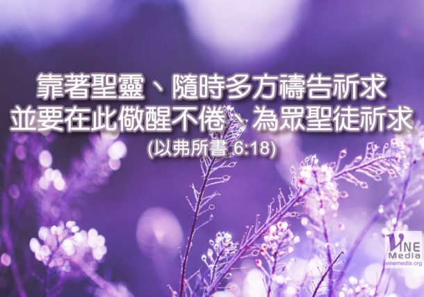 靠著聖靈、隨時多方禱告祈求、並要在此儆醒 …