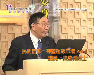 從天界的神靈講到地界的神靈,這些都是低級的神,又有很多,例如:三官大帝、福、祿、壽三星,三官大帝是什麼?分別是堯、舜、禹三個古代聖王,他們當了神仙後,就管理天、地、水,以其中一個就是天官賜福,這個就是天官。所謂天官就是我們新年常提及的那位「天官賜福」的神靈,其實是指我們熟悉的堯帝,這就是三官大帝了。還有財神和黑白無常,什麼是黑白無常呢?就是那個城隍廟,廟裡都有一個神,城隍是指什麼?城隍是環繞城池四周的一道護城河,就叫做「城隍」。所以城隍廟就是保護那個城的廟,城隍廟裡有黑白無常,就是當人死時,他就會拿走你的魂魄。黑白無常很醜陋的,人人都害怕他,但他安慰你,怕你見他會嚇一驚,所以他的頭頂寫著「一見發財」。當然山有山神、土有土地,還有一位叫做德福正神,就是土地公。這些都是低級神仙,就是縣官級。剛才那些玉皇大帝,就是皇帝級,西王母是貴妃級、太后級的,壽星公則是國舅爺之類。但這些低級的,就是土地公、雷公,屬於低級神。但最有趣,中國的神靈,即是管國家各種事物,連廁所都有一個管理者,叫「廁姑」,廁姑名叫麗華。不知道有沒有人是這個名字?他本來是一個美女,但是遭她的正室妒嫉,她娶回來時當妾侍,於是遭受妒嫉,被推進廁所溺斃。廁所怎能使人遇溺呢?現代人是不會明白的。因為我們現在有所用的是沖水廁所,但你到中國內地,特別是山區去扶貧。我就是做這些扶貧的工作,我就知道那類廁所是可以淹死人的。現時用石屎還好一點,過往只用木板,木板用得久了就會裂,如果跌了下去就會淹死,「不死都一身潺」。以前,西人來中國,有時途經落後地區,沿途下車找廁所,就會教他一進去就閉氣,當時要找廁所方便的話,就需要蒼蠅的幫助,牠們的出現就會知道廁所在那裏,接著閉氣。他說:「我暈了、暈了。」「你站著暈好了,不要往下跌,跌倒,你就會死。」古時的廁所是會淹死人的,據說麗華死後,她變成神仙,就是管厠所的。比土地公再低級一點的,廁所都有一個神靈看管,那麼她是很靈光,原來有人會去祭祀她。正月初五是祭祀廁姑,現在改名為紫姑,紫色的紫,一個穿紫色衣服的,因為「廁」字不動聽,令人有不快樂的聯想,所以用「紫」字。據說紫姑會動的,要是會請她上身,靈附在紙偶上,它是會動的。不過有些行內人就批評,其實那些道士,江湖術士,不是真的,那些江湖道士其實就在紙偶後黏一隻蟑螂,黏住牠的背部,你拿著就不知道的,只要放在床上、或放在牆上就會急速的走了,當你拜祭牠的時候,牠就走了。嘩﹗以為很靈光,據說紫姑就是這樣靈光的。