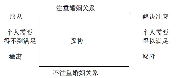 妥協的目的在於既維持夫妻關係又使個人的需求達到一定的滿足。但雙方都可能對妥協的結果不滿意。妥協一般要比無動於衷的結果要好,但討價還價常常是以婚姻的幸福為代價了。