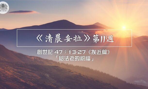 清晨妥拉系列 《清晨妥拉》第11週 (七) | 創世記 47:13-27 《挨近篇》 「給法老的祝福」 By 西北祈禱院 NWHOP North-west House of Prayer2025-01-05 每天清晨以20分鐘,按着 …