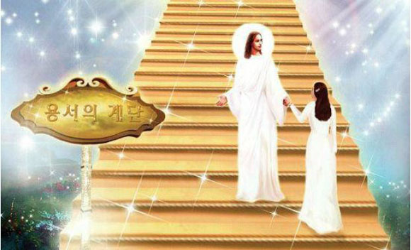 饒恕的階梯 饒恕的階梯有黃金字體寫著「饒恕的階梯」黃金階梯穿透從天灑下的耀眼光芒,仿佛連接到天上去一般,看起來很高、沒有盡頭。階梯入口有一個很大的黃金告示牌,上面有發光的黃金字體寫著「饒恕的階梯」。