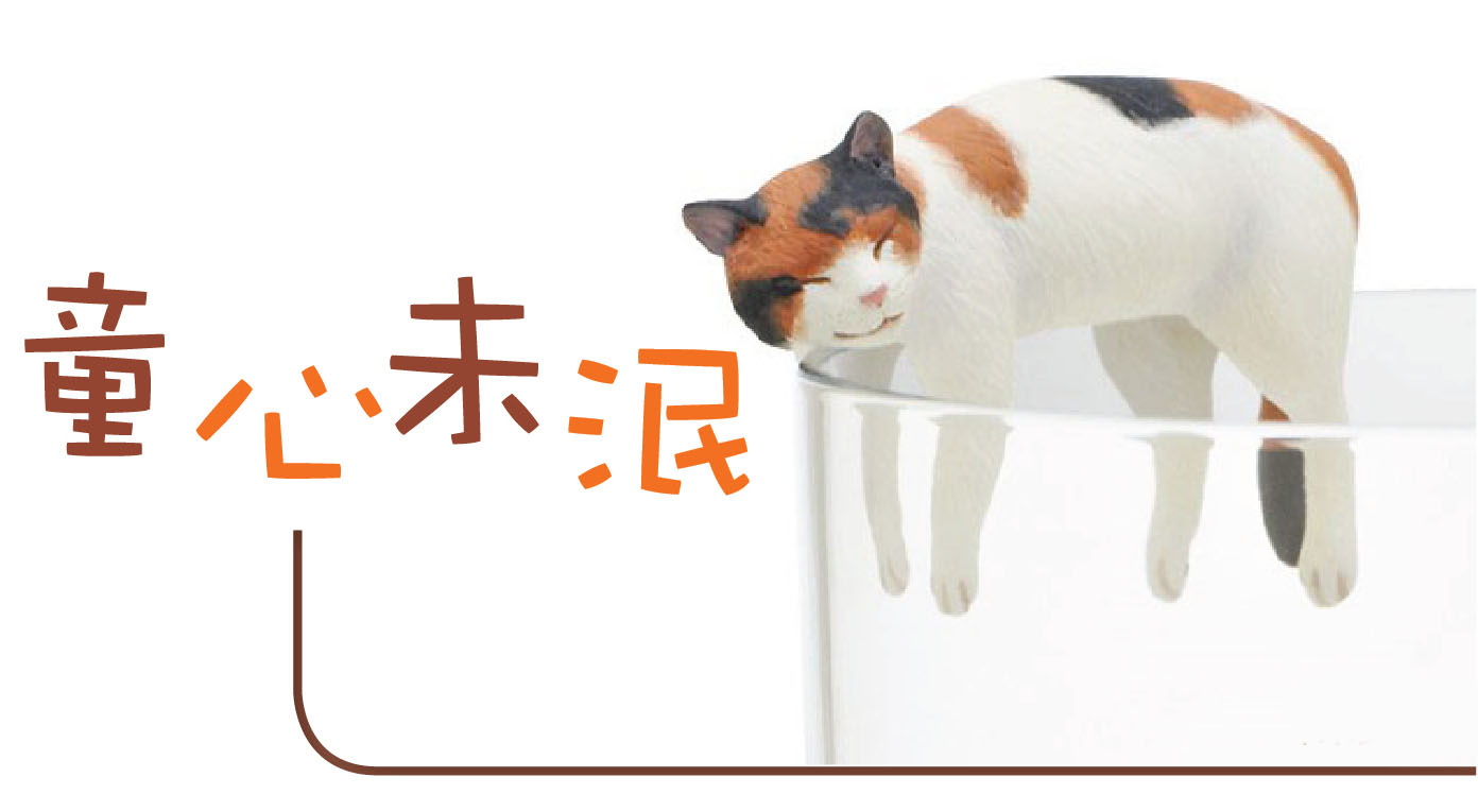 現在流行的扭蛋玩具以動畫、電玩和電影角色為主;另外一類設計稱為「治癒系列」,治癒玩具即是那些令人會心微笑的小擺設。今年熱賣的除了「杯緣子」(コップのフチ子,Fuchiko)系列外,還有「悠閒睡眠」(のんきだ寝)系列。辦公室從業員在喘不過氣的工作中,偶爾看見桌上懶洋洋的動物睡姿,便稍微得到心靈慰藉,可以暫且提高意志奮鬥下去;難怪扭蛋文化在日本成為一股永不衰竭的潮流。我們曾到訪東京六本木國立新美術館,偶然發現「杯緣子貓」扭蛋,我的心頓時被融化掉,就乖乖投入硬幣到扭蛋機以換取心頭好;那隻悠閒的花貓正躺在我的水杯上哩!