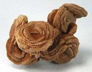 這種結晶過程,在合宜的天然條件下,也可以自然慢慢地進行;因爲只出現在沙漠,所以被命名爲「沙漠玫瑰」(封面圖)。顯示在自然界,沙漠地區集合風、咸水和壓力,可以製造出如此美麗及多姿多彩的「玫瑰花」,儼如由花朵變成的石頭,凝固在時間中。况且它的花瓣是展開的,如綻放的玫瑰。有些如刀片形狀,但有些貌似一朵朵美麗的玫瑰花,有些只有數厘米大,亦可長至一米那麽巨形的花。有些只有一兩朵,亦有數十朵結集成爲「盆栽」。
