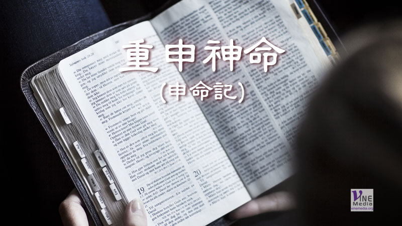 中英文聖經稱為「申命記」(DEUTERONOMY)。希伯來文聖經則以本書第一個字「話語」作為本書名稱,是摩西所寫的第五本經書。書中的許多話,在出埃及記、利未記和民數記都曾說過,但在申命記複述時,卻有不同的教訓。四十年之後,摩西再用神的話教訓第二代的以色列人,所以稱為「申命記」。他們快要進入迦南地了,因此本書成為第二代選民的「宗教教育手冊」。這本書不但對以色列人適用,對今日恩典時代的基督徒,也十分合用。其實這本書是對全世界的人說的,如果世界上每一個人都肯依照本書的話去行,世界便沒有戰爭,社會也罪惡減少,人與人相處也非常融洽,可以享受真正和平的生活了。摩西為以色列人的領袖已有四十年經驗,他十分了解他的同胞,所以申命記常常出現「謹守」、「遵行」和「謹守遵行」等勸勉的動詞,共59次。假如他們虔誠而順服地「謹守遵行」神的命令,他們便多多蒙福,否則便會招致可怕的災禍(廿八章)。申命記是摩西在以色列人到約但河東的曠野時所寫(1節),那時是出埃及後第四十年(3節)。本書的重要性如下:1. 人人均應閱讀,牢記、教訓兒女(六4-9)。2. 國家元首必須手抄一卷,時常閱讀(十七18)。3. 到了迦南地之後,要把書中的話寫在石頭上示眾(廿七2-3)。4. 要在安息年向眾人誦讀此書(三十9-13)。