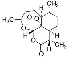 中國女科學家屠呦呦在七十年代初承擔研發抗瘧疾新藥的專項,以她中藥化學家的專業,她的研究團隊在包括烏梅,常山,青蒿等數千種天然草藥中盡行篩選,最後鎖定黃花蒿為有潛質的天然植物,但分離得來的活性物,藥效反覆;她從公元340年東晉時代葛洪的<肘後備急方>提到『青蒿一握,以水二升漬,絞取汁,盡服之。』的記載中,意識到這種有異於中藥經常使用的<水煎法>來備藥,極可能是藥性反覆的關鍵原因,於是她改以沸點只有35度的乙醚作提取植物中活性成份的溶劑,從而避免了青蒿素在萃取過程中,因受熱而分解並失去藥性。青蒿素的製劑(圖三)被廣泛使用,多人生命得以保存;它的結構如圖四所示,青蒿素的受熱不穩定性和生物活性,皆與它環狀的雙氧(-O-O-)結構有關係,它受熱時兩個氧原子的化學鍵極易分解而失去活性;在穩定狀態下,它能與紅血蛋白中的鐵離子進行反應而生成高氧化態的鐵鉻合物,引發一連串的生化反應而能產生含氧的活性游離基,從而殺死人體內的瘧疾寄生蟲。