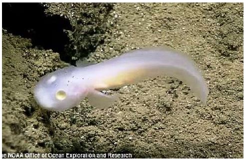 2016 年2 月在夏威夷群島四千米深,由「深海發現號」(美 國國家海洋和大氣管局NOAA)拍攝到一種前所未見的白色八爪 魚,貌似漫畫中的卡通人物,被稱為幽靈八爪魚,樣子卻十分趣 怪和可愛(封面圖)。 2 016 年七月在太平洋近日本南部的馬里亞納海溝六千米,更 首次發現活生生的「幽靈魚」(25 頁圖),這是一項不尋常的發現, 因為首次拍攝牠在海底的活動,即使這類像鰻魚的魚類早在1878 年由科學家在澳洲的昆士蘭海底拖出來,不過早已死了,所以迄 今未能真正看見一尾幽靈魚的真面目。