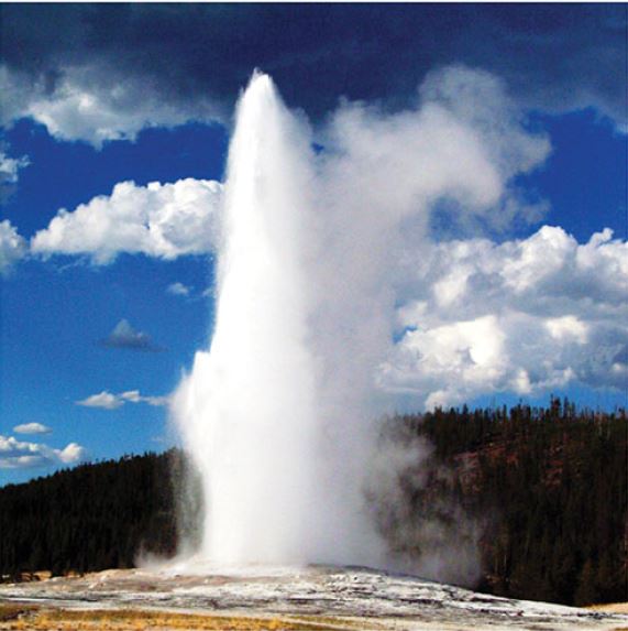 在不少購物商場或展覽館裡可以看見一些噴泉,加上彩燈和音樂,造成非常悅目的效果,吸引起顧客或參觀者駐足欣賞。自然界的噴泉分佈在五大洲,有一半位於美國的懷俄明州,特別是在黃石公園,其中最著名的莫過於「老實噴泉」(OLD FAITHFUL),因為它必定每隔91分鐘噴出高達卅米以上、一至三萬公升的泉水,是超過沸點的熱水。遊客喜歡在它旁邊拍照留為記念。噴泉是自然現象,在火山附近的水在二千米下與炎熱的石頭接觸而達沸點,加上高壓,熱水通過石頭內狹窄的裂縫湧到地面上,造成直立的水柱。由於水花被風吹著,它有時呈雲柱狀、仙女狀、尖塔形,令人目瞪口呆。