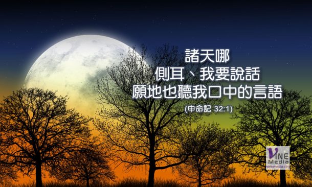 諸天哪、側耳、我要說話、願地也聽我口中的 …