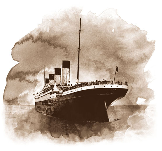 1912年4月15日,號稱「永不沉沒」的鐵達尼號(Titanic)客船在前往紐約的處女航中,撞上了一座冰山,船身破裂成兩段,沈沒在大西洋海底,造成和平時期死傷人數最慘重的海難。
