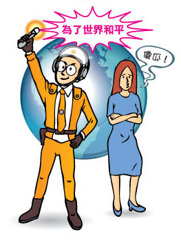 說起來,每一個男人都是為了人類和諧而努力的超人!讓我向你大聲鼓舞:「為了保護世界和平,請努力加油!」