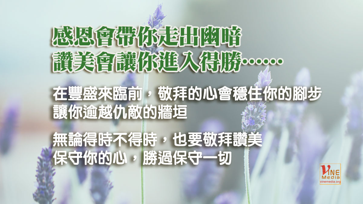 哈利路亞!我要常存感恩的心來讚美祢、尊榮祢!我巴不得能常常像個天真爛漫的小孩,在祢寶座前翩翩起舞,並繞著祢的身旁打轉!我只要單單見祢,依偎在你的身旁,聽見祢呼喚我的名字,如此,我就心滿意足了!