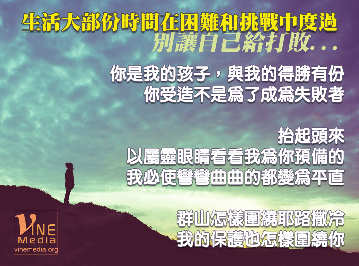 很多時候困難、沮喪把我壓得透不過氣來,我甚至無法面對鏡前的自己,對於自己的無力感,我感到甚疲倦!我所渴望的突破何時臨到?我快被這種情緒上的洪濤所淹沒!我的靈啊!當抬起你的頭來,把你的眼目從困難、窘境中轉向那位有憐憫、有恩典、不輕易發怒、並有豐盛的慈愛和誠實的──你的主!所以,靠著那加給我力量的,我奉主耶穌基督的名宣告:雖然無花果樹不發旺、葡萄樹不結果、橄欖樹也不效力、田地不出糧食、圈中絕了羊、棚內也沒有牛.然而我要因耶和華歡欣、因救我的 神喜樂。主耶和華是我的力量.他使我的腳快如母鹿的蹄、又使我穩行在高處。哈利路亞!我是得勝者!謝謝主!奉主耶穌基督的名,阿們。