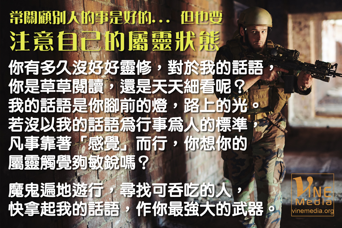 天父爸爸: 讓祢的心為我感到憂傷,求祢赦免!父啊!開通我的耳朵,賜我一顆受教的心,叫我看重祢的一切命令!我要一心尋求祢,將祢的話藏在心裡,免得我得罪祢。我奉主耶穌基督的名,我要穿戴祢所賜的全副軍裝,好在磨難的日子抵擋仇敵,並且成就了一切,還能站立得住!謝謝主!奉主耶穌基督的名,阿們!