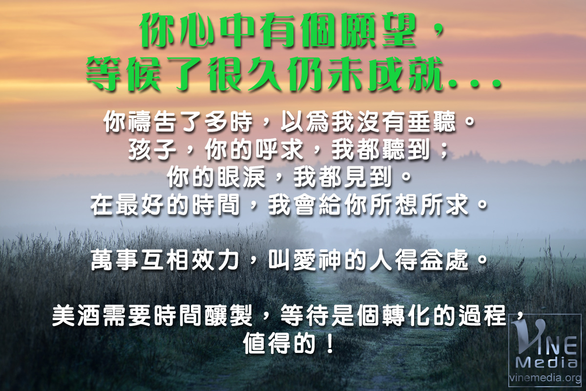 祢把我的眼淚都裝在祢的皮袋裡,就連我的頭髮,祢也數算過,祢就是如此的無微不至地來愛我,並小心的呵護著我。如果我所盼望的還未臨到,願祢起來,幫助我,叫我的信不至於失去盼望;幫助我,使我能勝過一切的軟弱與試探,在一切的軟弱與試探上,祢必為我開出路,叫我得以忍受得住,並得著那生命的冠冕!謝謝主!奉主耶穌基督的名,阿們!