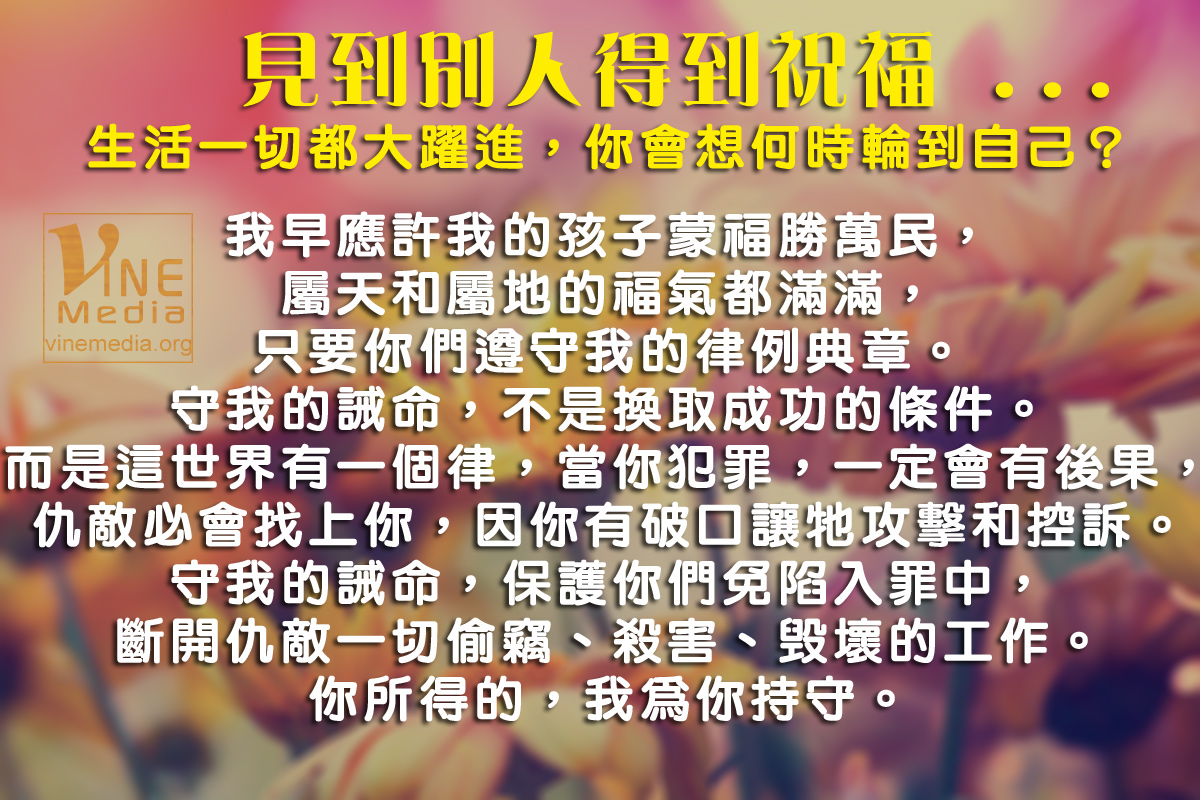天父爸爸: 謝謝祢愛我!幫助我成為祢要我成為的樣式,使我將你的典章擺在我面前,免得我得罪祢!求你將你的律例指教我、我必遵守到底。賜我悟性、我便遵守祢的律法.且要一心遵守。祢也必將生命的道路指示我,使我在祢面前有滿足的喜樂,因在祢右手中有永遠的福樂。我的靈啊!你要一心追隨主,單單愛祂,因為祂是配得,祂是你的主、你的良人,你的好處不在祂以外。如此,安舒的日子、就必從主面前來到!謝謝主!奉主耶穌基督的名,阿們!
