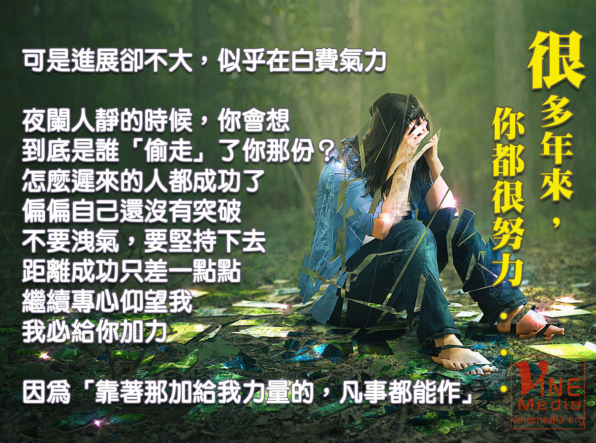 天父爸爸: 為何世事是那麼的不公平?為何好人總是被欺負?為何我努力行善,卻得不到我所渴望的回報呢?主啊,祢在那裡?祢不顧我了嗎?... 我的心哪,你要休息,要知道祂是神,祂必不叫你的腳搖動.保護你的必不打盹、也不睡覺。你坐下、你起來、祂都曉得.祂從遠處知道你的意念。你只當將你的事交託給祂、並倚靠祂、祂就必成全。在祂發你去成就的事上,必然亨通,因為人若有願作的心,必蒙悅納,乃是照他所有的,並不是照他所無的。謝謝主!我靠著那加給我力量的、凡事都能作。奉主耶穌基督的名,阿們。