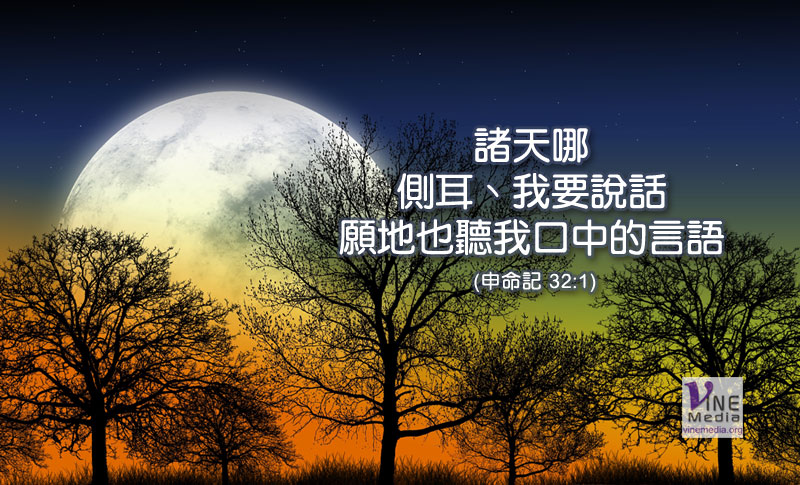 諸天哪、側耳、我要說話、願地也聽我口中的言語。 (申命記 32:1)