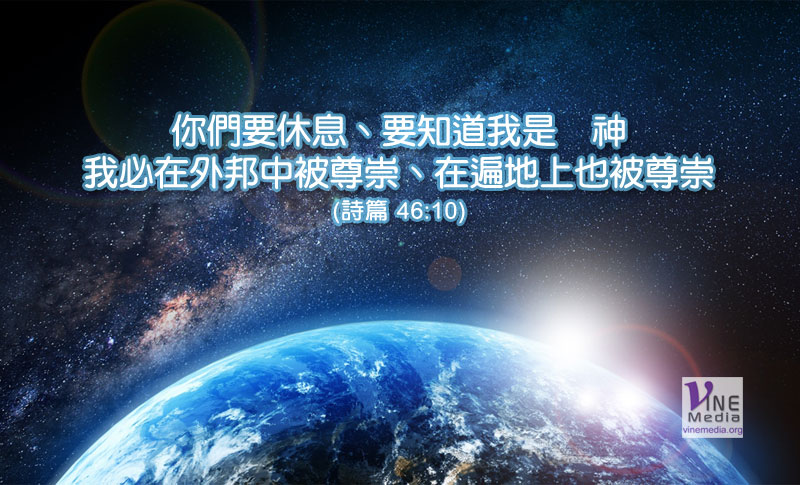 你們要休息、要知道我是 神.我必在外邦中被尊崇、在遍地上也被尊崇。(詩篇 46:10)
