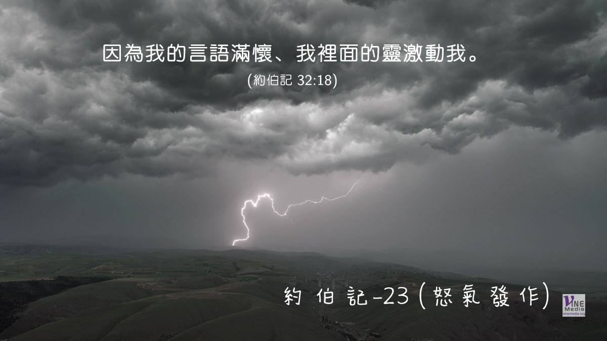 「因為我的言語滿懷、我裡面的靈激動我」(18節)「我必不看人的情面、也不奉承人」(21節)──以利戶已經忍到不能不說了,他要說他真實看見的問題,這「看見」有時候是「靈裡」的看見,是越過「魂」層面的「情緒」──「然而屬血氣的人不領會 神聖靈的事、反倒以為愚拙.並且不能知道、因為這些事惟有屬靈的人纔能看透。屬靈的人能看透萬事、卻沒有一人能看透了他。」(林前2:14-15)