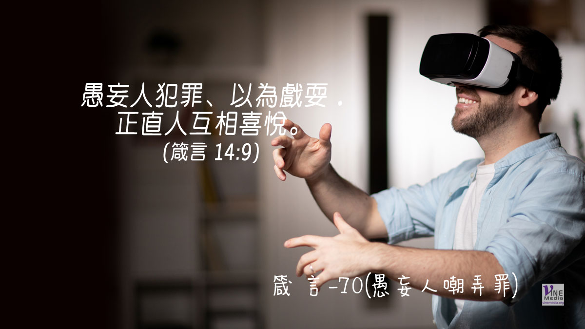 「愚妄人嘲弄罪」──正如使徒保羅所說的:「自己以為站得穩的、須要謹慎、免得跌倒。」(林前10:12)──「自己以為站得穩的」就是那些自以為可以敵擋誘惑或迷惑的人,他們是愚妄人嘲弄罪,自以為抽一根煙、試一口毒品、玩一夜情、偷點小東西等等,都有自制的能力,絕不會上癮、不會被發現,然而「罪就伏在門前.它必戀慕你、你卻要制伏它。」(創4:7)