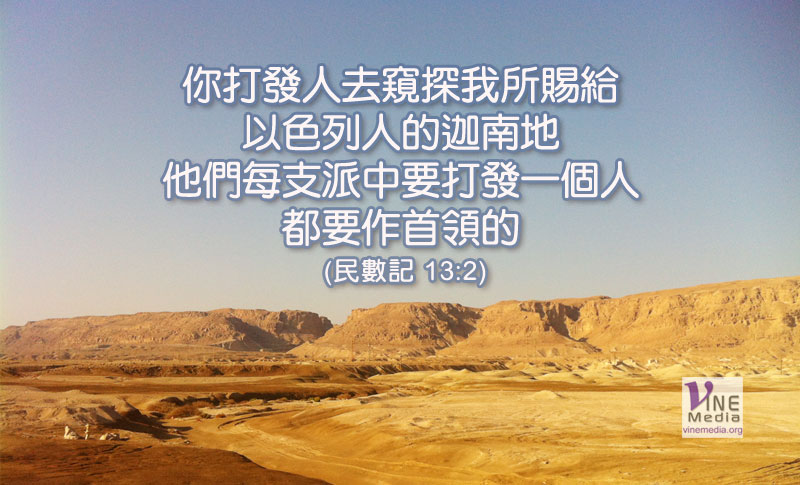 你打發人去窺探我所賜給以色列人的迦南地、他們每支派中要打發一個人、都要作首領的。 (民數記 13:2)