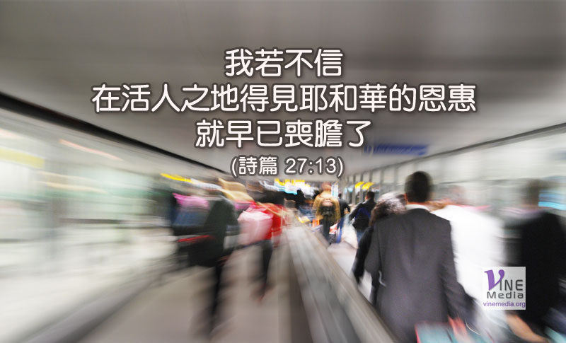 我若不信在活人之地得見耶和華的恩惠、就早已喪膽了。 (詩篇 27:13)