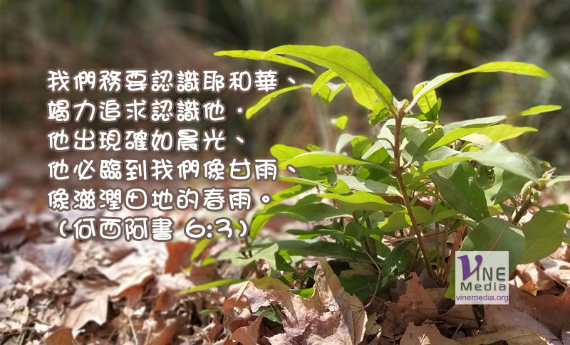 我們務要認識耶和華、竭力追求認識他.他出現確如晨光、他必臨到我們像甘雨、像滋潤田地的春雨。(何西阿書 6:3)