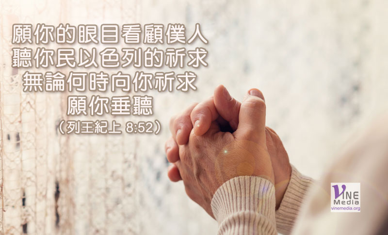 願你的眼目看顧僕人、聽你民以色列的祈求、無論何時向你祈求、願你垂聽。(列王紀上 8:52) 看我為寶為尊的主啊,謝謝祢的愛!我甚願來到祢的慈恩寶座前,向祢毫不隱瞞,因為我有所求、我有所要,無論何時我向祢祈求,願祢垂聽成全!不推卻卑微人禱告的主啊,求祢顧念我的苦情、我的無奈、我的困惑、我的膽怯,因我力量微小、心神耗盡、我眼中的光漸消,求祢速速回應我一切所求的,免得我憂傷過度,以致我的靈被壓傷,無法伸展!謝謝祢對我無限的包容與接納,我的靈要起來讚美祢、尊榮祢,奉主耶穌基督的名,阿們。
