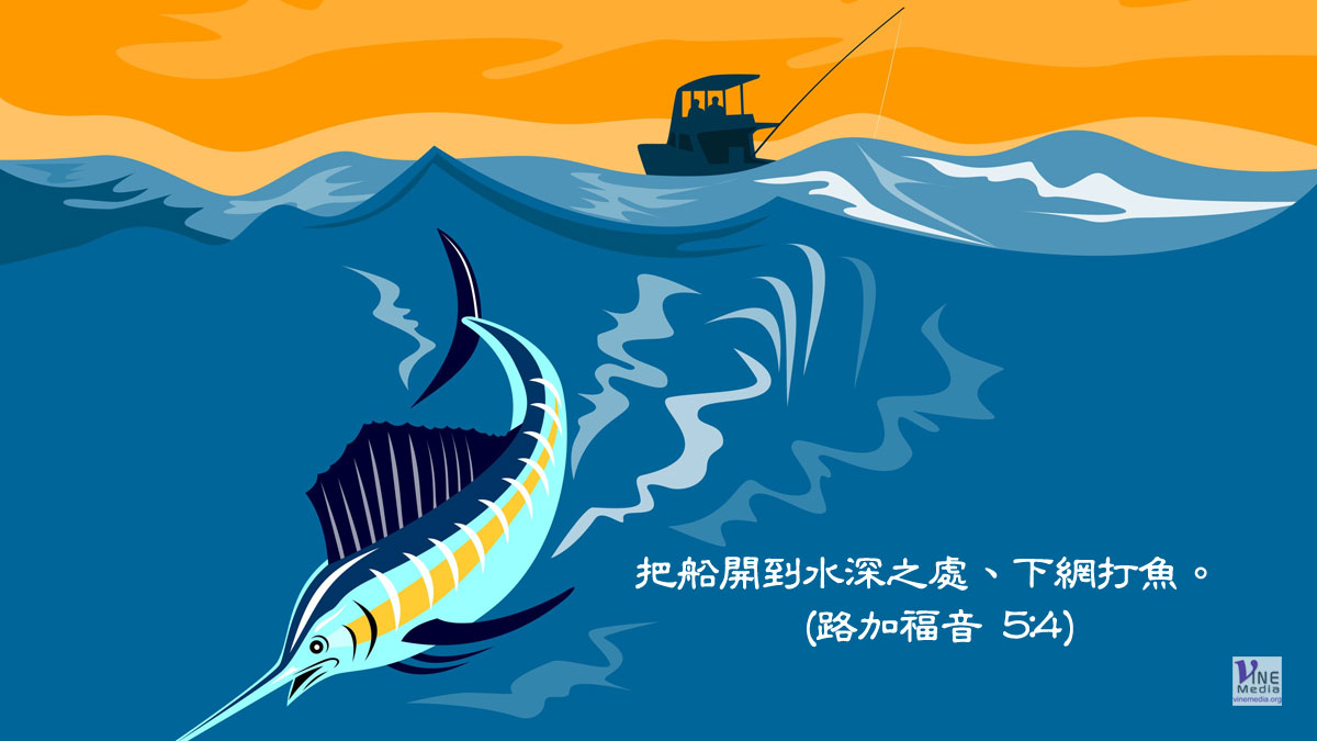講完了、對西門說、把船開到水深之處、下網打魚。 (路加福音 5:4)