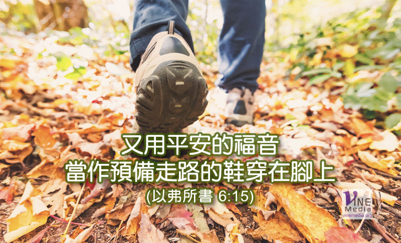 又用平安的福音、當作預備走路的鞋穿在腳上.(以弗所書 6:15)