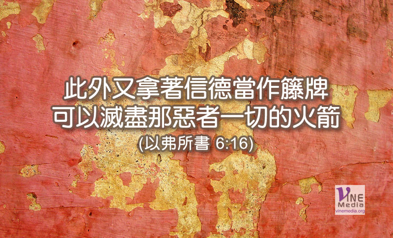 此外又拿著信德當作籐牌、可以滅盡那惡者一切的火箭.(以弗所書 6:16)