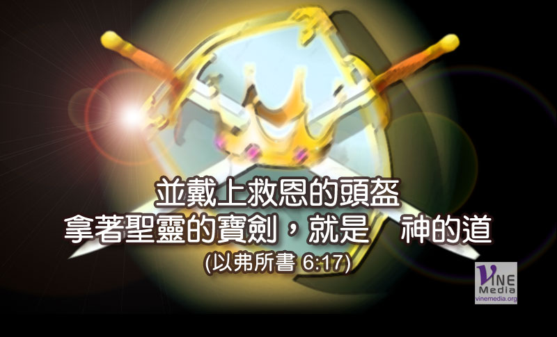 並戴上救恩的頭盔、拿著聖靈的寶劍、就是 神的道.(以弗所書 6:17)
