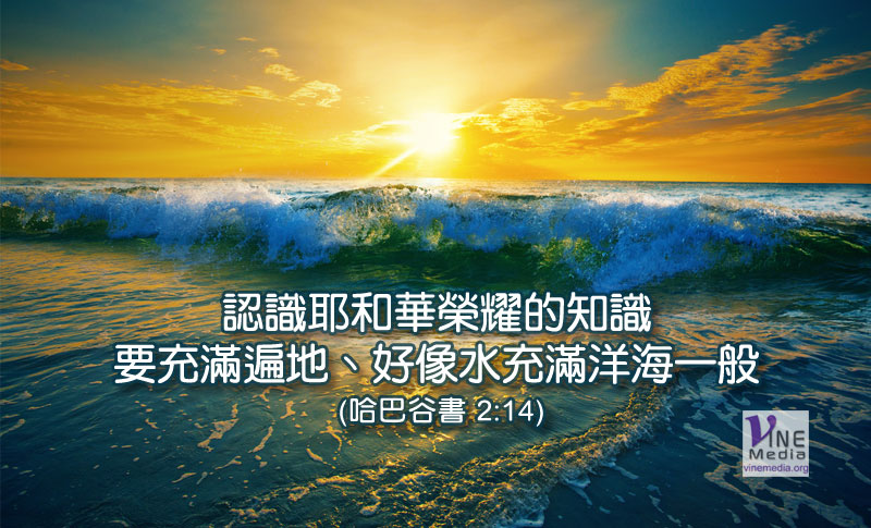 認識耶和華榮耀的知識、要充滿遍地、好像水充滿洋海一般。 (哈巴谷書 2:14)