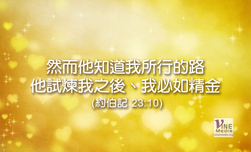 然而他知道我所行的路、他試煉我之後、我必如精金。 (約伯記 23:10)