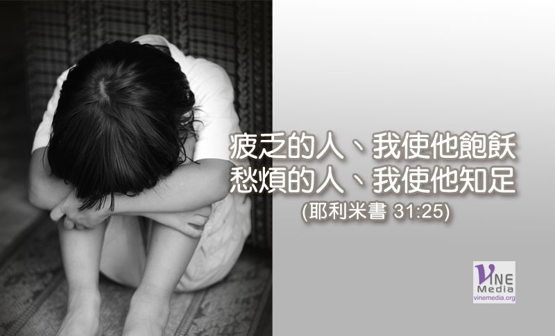 疲乏的人、我使他飽飫、愁煩的人、我使他知足。 (耶利米書 31:25)