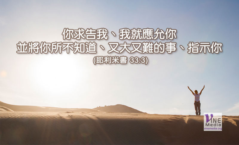 你求告我、我就應允你、並將你所不知道、又大又難的事、指示你。 (耶利米書 33:3)