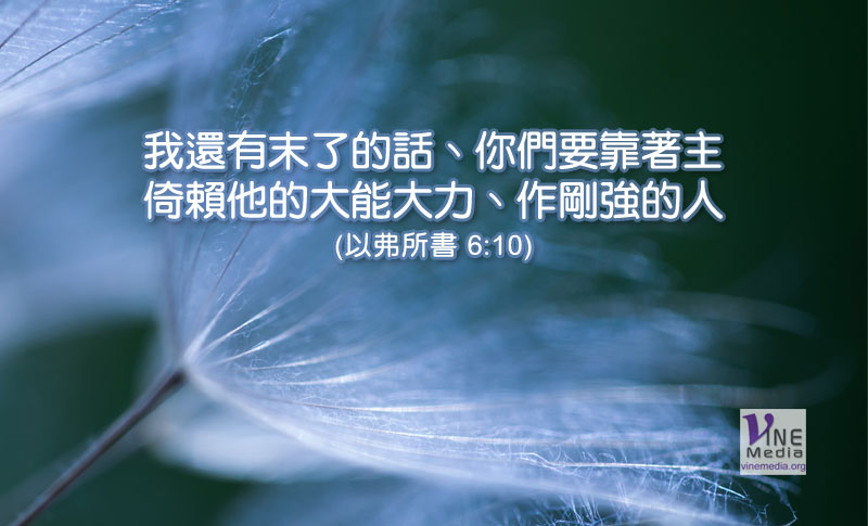 我還有末了的話、你們要靠著主、倚賴他的大能大力、作剛強的人。(以弗所書 6:10)