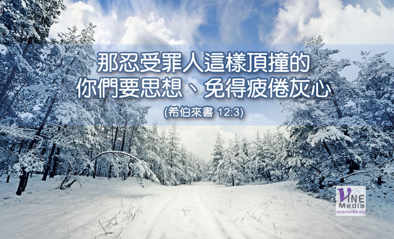 那忍受罪人這樣頂撞的、你們要思想、免得疲倦灰心。 (希伯來書 12:3)