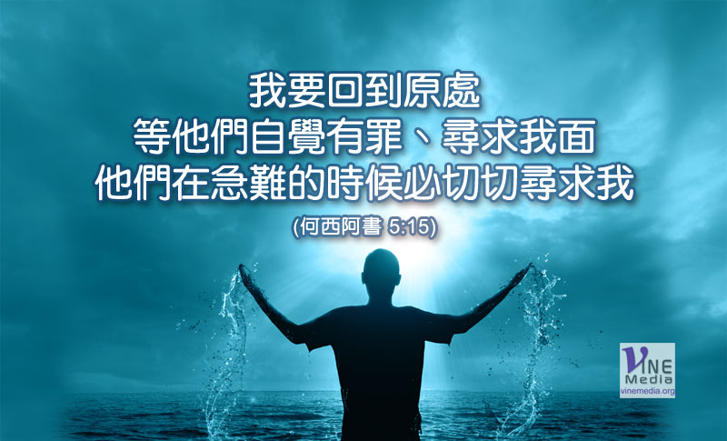 我要回到原處、等他們自覺有罪、〔或作承認己罪〕尋求我面、他們在急難的時候必切切尋求我。(何西阿書 5:15)