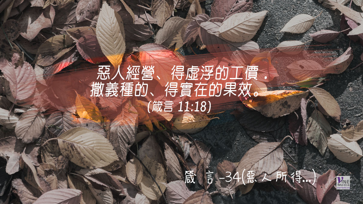 #311 十一月六日──箴言-34( 惡人所得⋯⋯)-第11章18-19節